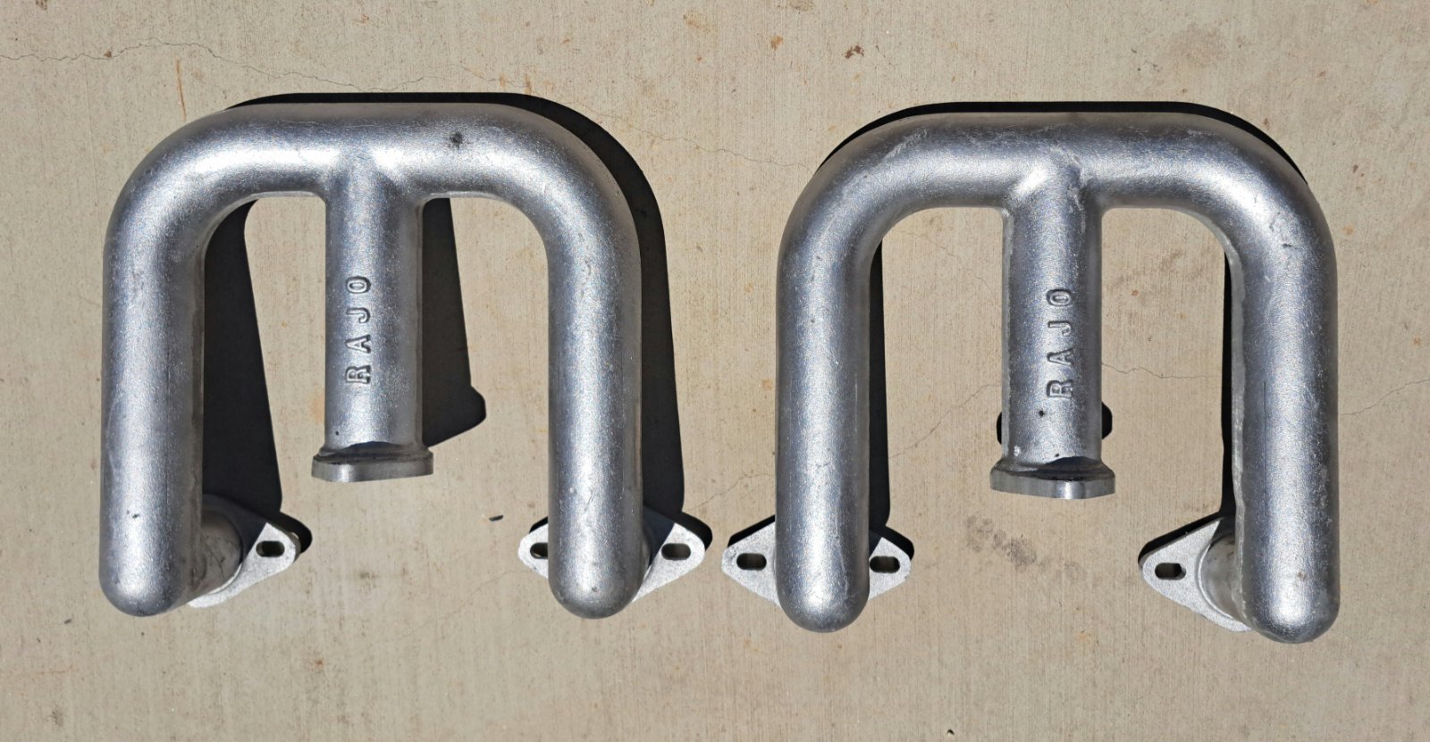 I have two RAJO high volume intake manifolds available for purchase. These were designed for use on a boredout Model T flathead engine block. They are similar in design to the Winfield 2 up 2 down intake manifold. Ports are 1 3/8". Carburetor side throat diameter is 1 5/8". Bolt flange is Winfield Model M201 B size. Price is $200 each plus domestic shipping. Mark Chaffin (951) 805-0928