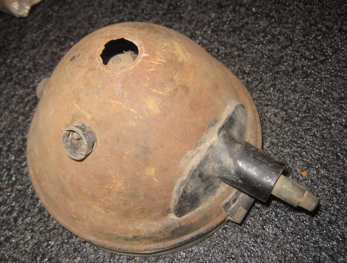 FS: two teens-era spotlights. The first one has a pull switch in the back and a nice reflector. The second one, like the first one, has a cracked glass. The second spot light opens up much like the earlier carbide lights, but, impractically, you have to remove the reflector to replace the bulb. SOLD!