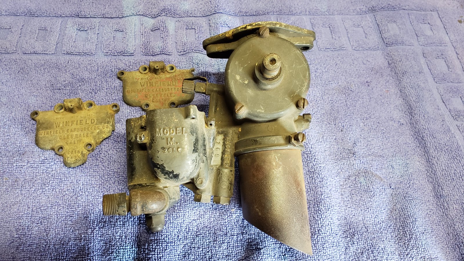 Decent Winfield Model M Carburetor size C, 1 3/4" throat, number 169. No visible cracks. Needs rebuilding, clean up. Float bowl cover provided but needs repair. No high or intermediate needles. Asking $325.00 OBO. Shipping included. Contact Mark with questions.