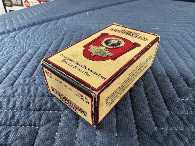 Brand new NOS Motometer Jr for sale. The box is very nice, all the flaps are intact. The nickel finish is like new as are the face and thermometer. The pictures speak for themselves. Asking $360 including shipping CONUS.