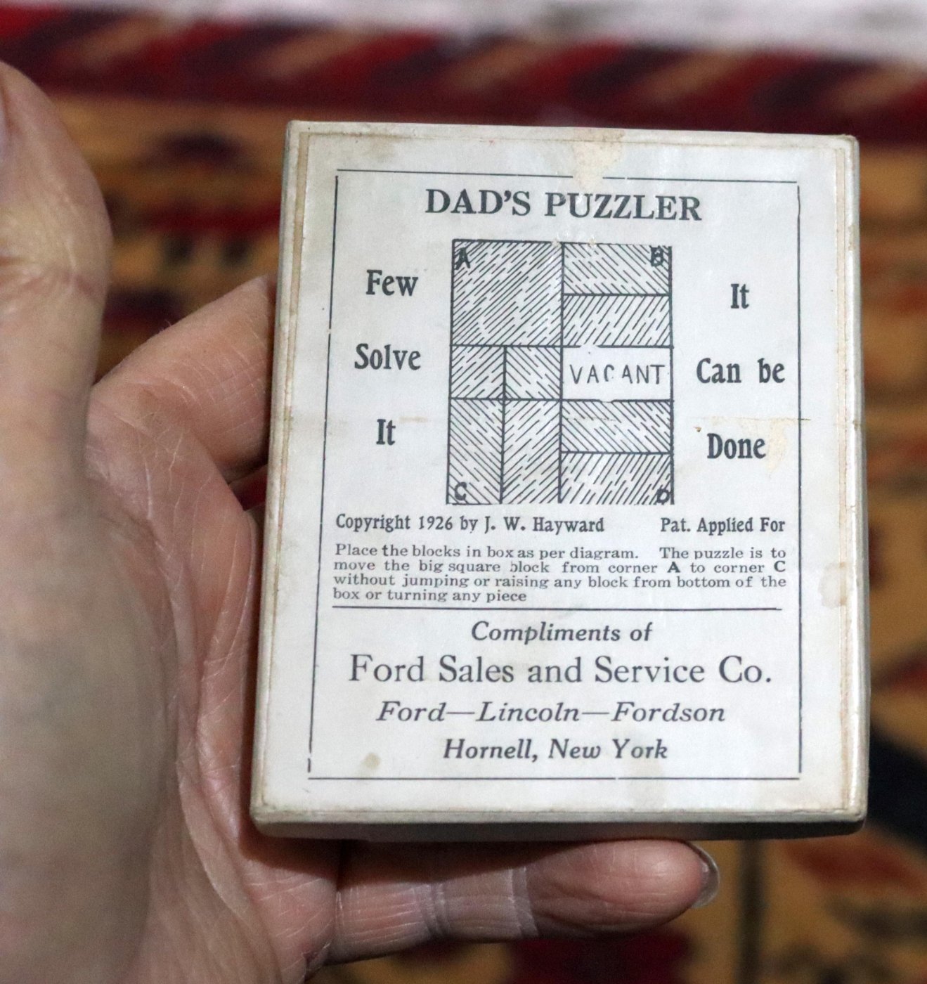 Re: PRICE LOWERED! - "DAD'S PUZZLER" MODEL T ERA FORD DEALER HAND OUT IN MINT CONDITION !
