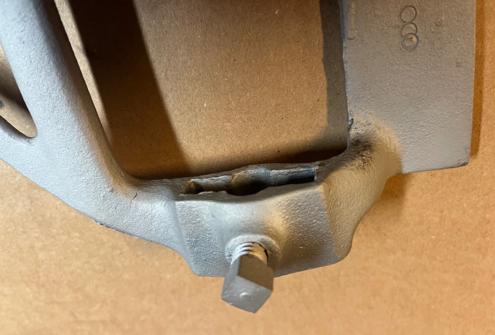 For Sale is an original cast iron license plate bracket. Some light pitting as seen in the photos. Good threads, no cracks and is very straight. $100 plus shipping. Langs 1-800-872-7871