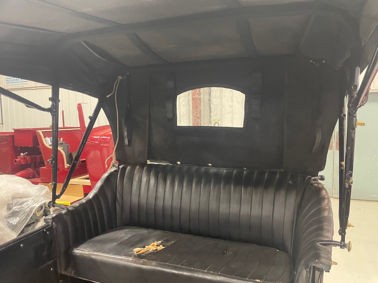 FOR SALE: 1914 Runabout Body w/ correct Turtledeck, nice Top Iron Sockets & Bows, Side Curtains, Interior upholstery, & correct Cherry Firewall. Very presentable as-is. (This car won Best Commercial Vehicle on the 2024 Cadillac MI tour. ) By my standards, the body Wood is approximately 50% which means it has some age but still has much life left. The door opens & closes as normal and does not fly open when driving. A new Top & Side Curtains were professionally sewn approx. one year ago. Seat cushion & backrest has torn places that are easily covered with a towel or blanket. Definitely functionable and useable as-is. Paint is shiny although it does have chips and flaws.
