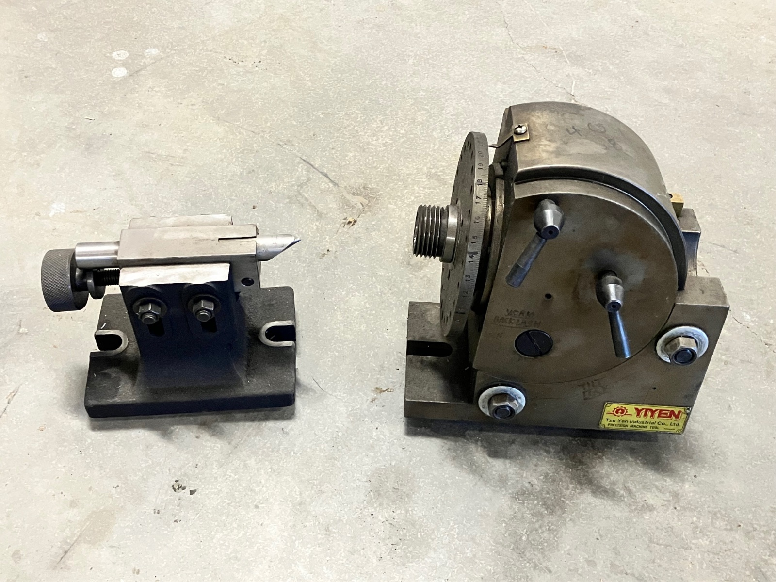 Making room for bigger and better toys! This is the tilting rotary indexer that I used to use for drilling spoke holes in my Buffalo wheel centers. It worked great, but I moved to bigger toys, and now on to bigger toys again. Tailstock, dead center, drive dog, 6” 4 jaw independent, and chuck adapter plate included. Virtually unused, excellent condition, and will work with any milling machine. $400 plus shipping