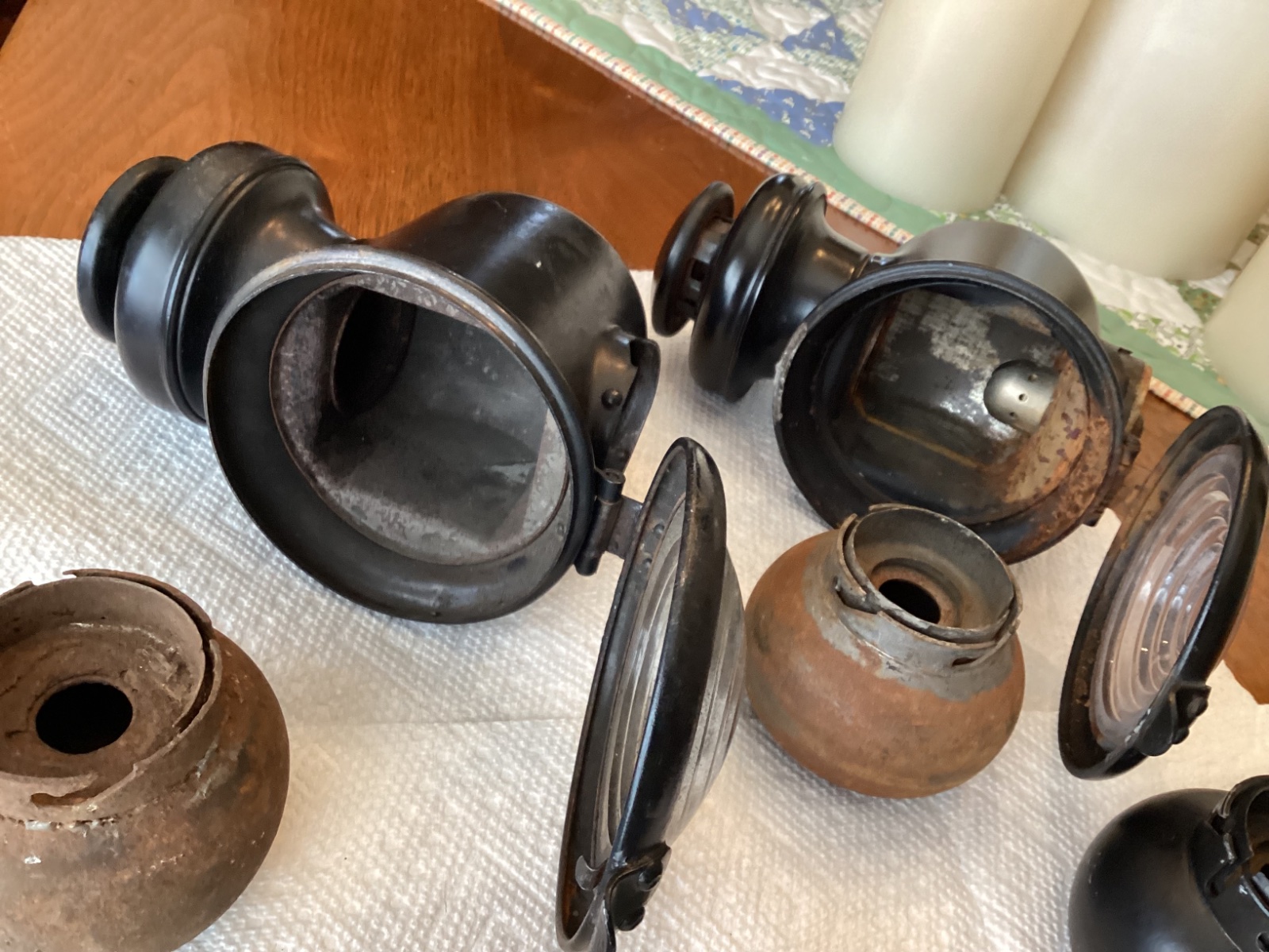 Four fonts. One unpainted looks to be Jno. Brown with marked script Brown on bottom. Black painted font marked E&J No 3-414 on bottom w 1914 patents. Burner mount base cracked multiple locations with piece missing; maybe useful parts only.
