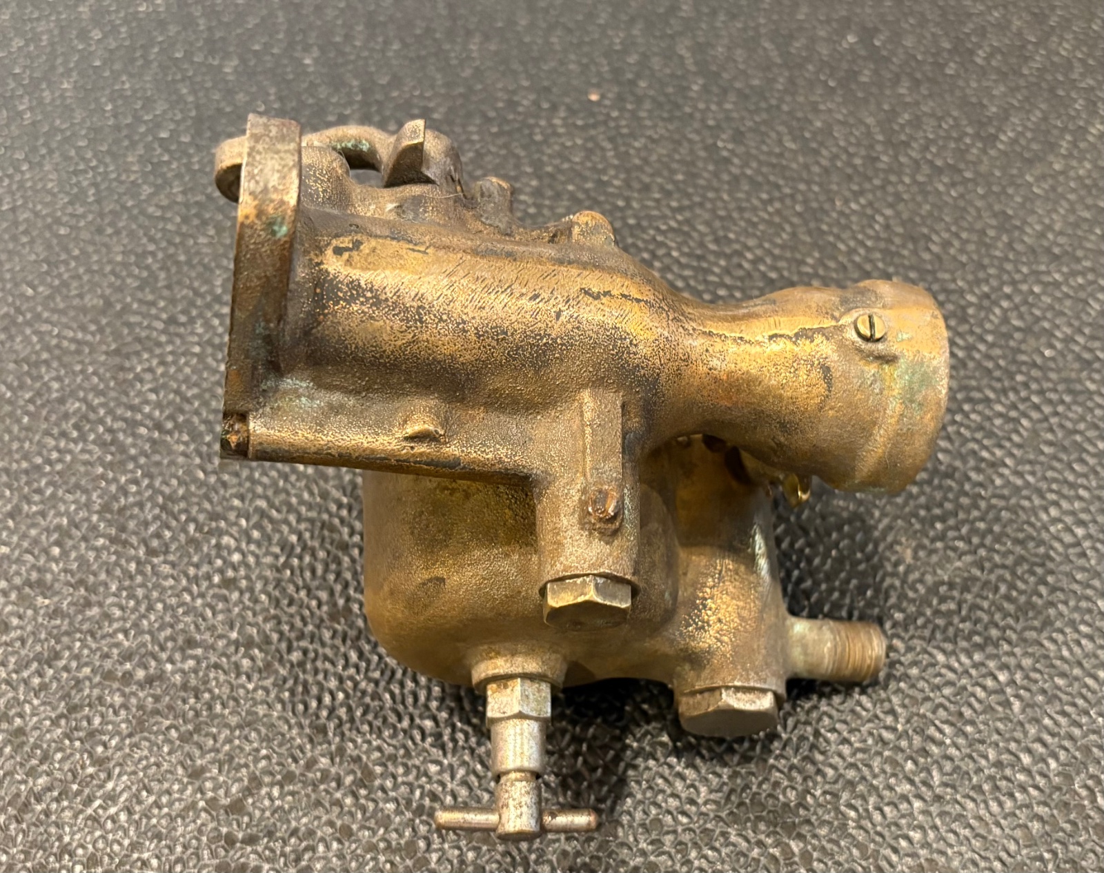 Brass Toquet carburetor. Appears complete. Throttle and choke are free. Interesting design and seems like a pretty basic carburetor with a straight through design. The only things I could find wrong with it are the choke spring is broken and the threads on the fuel bowl inlet aren’t the prettiest but could use a little touch up with a thread file.