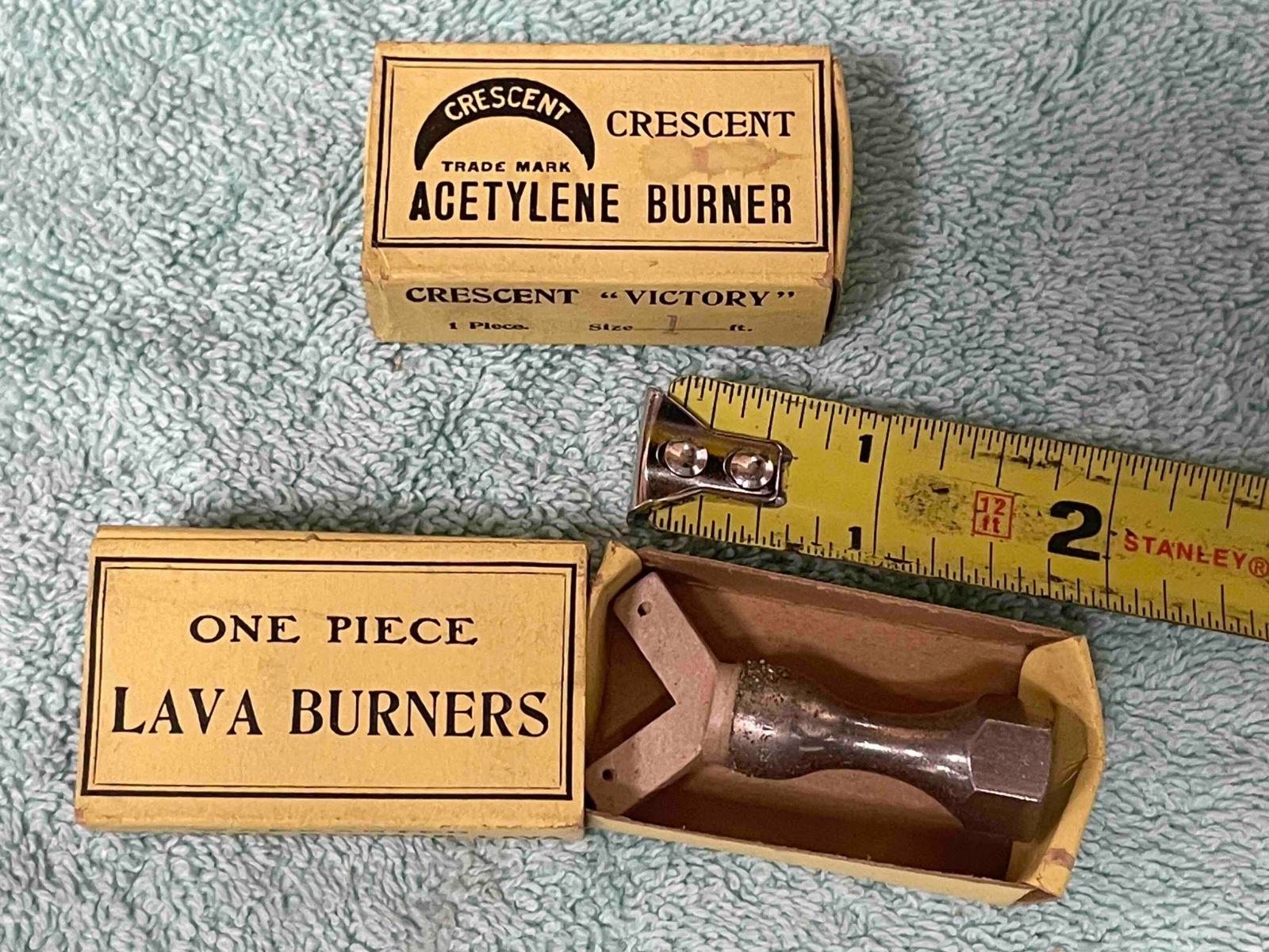 Pair of New Old Stock burners for gas headlamps, still in original boxes, 100+ years old. $109 for the pair including domestic 48 state shipping.