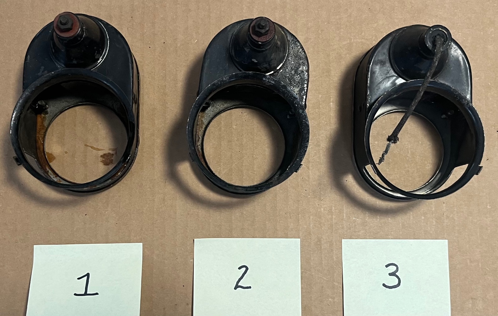 For Sale are 3 most likely NOS accessory Stoplight units. Selling EACH for SOLD plus shipping. These replace the housing on 1924 - 1927 standard Ford taillights. Easy to install they are put on with a snap ring. Made by Victor. #1 and #2 are missing a small cap that covers the wire connection that does not effect usability. Lang’s 1-800-872-7871