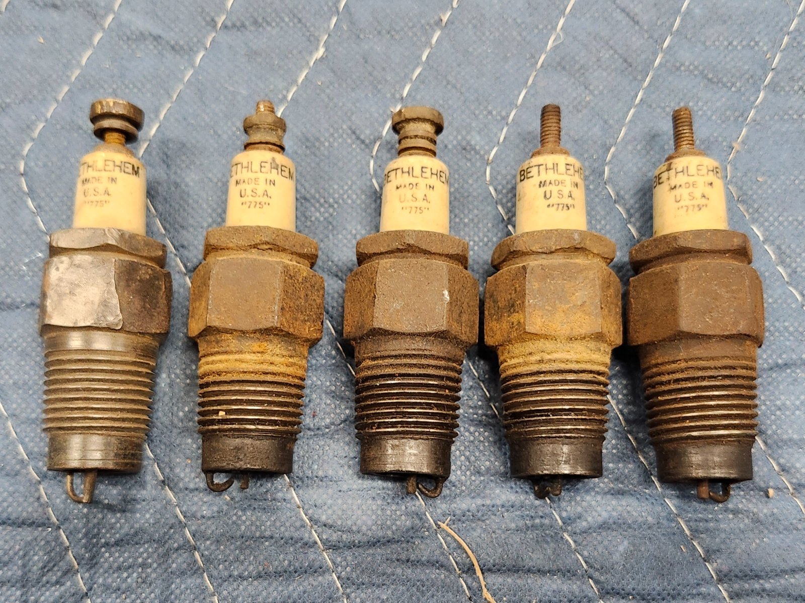 I have five BETHLEHEM Spark plugs one has a rounded hex, the other four should clean up very nicely for additions to you Spark plug collection, or to use in your Model T. They are marked in capital letters as such: