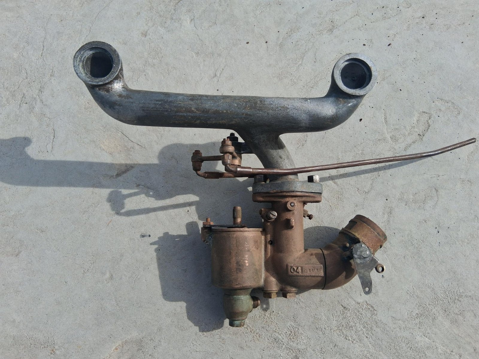 Zenith 04 and manifold. Complete. Nothing frozen on it. However, the fourth pic shows a cheesy "repair". My original post indicated a missing adjustment needle which I have found and is now on the carburetor. I'm asking $350. I'm open to offers. If you're interested, please email me through the forums email system. Thank you.