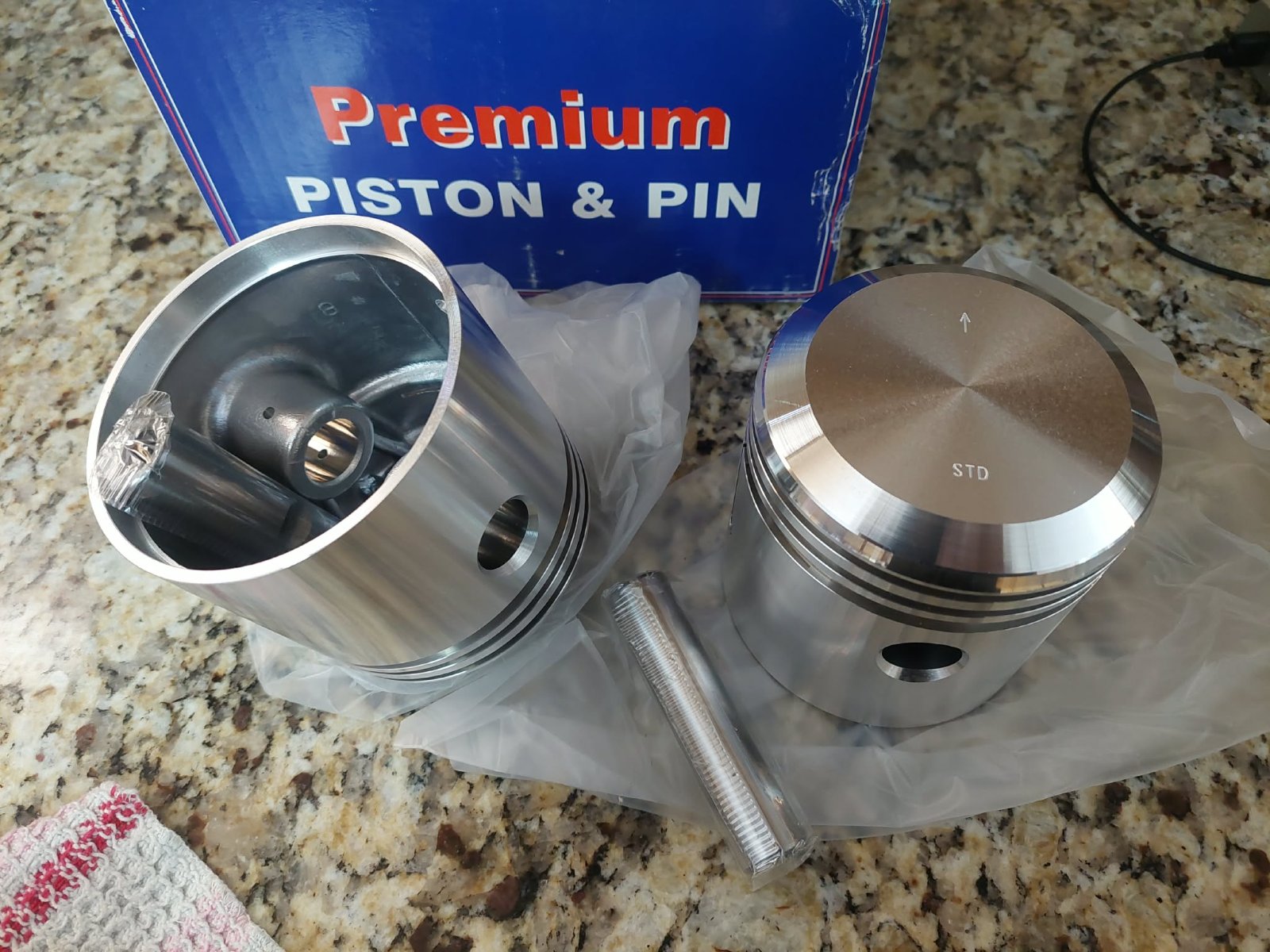 New standard piston set with wrist pins in the box and packaging. $125 + shipping