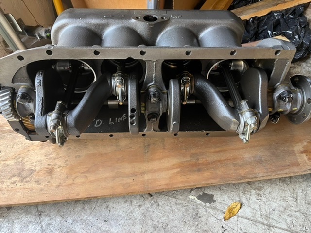 For sale is a rebuilt short block dated April 1920. It was built for R.V. Anderson by Kevin Pruss. New .040 aluminum pistons, Re babited rods and mains, new cam, new brass timing gear and looks like a scat crank. Located in western NY, you pay shipping or pick up. $5,000.00. Kdmks AT att.net.