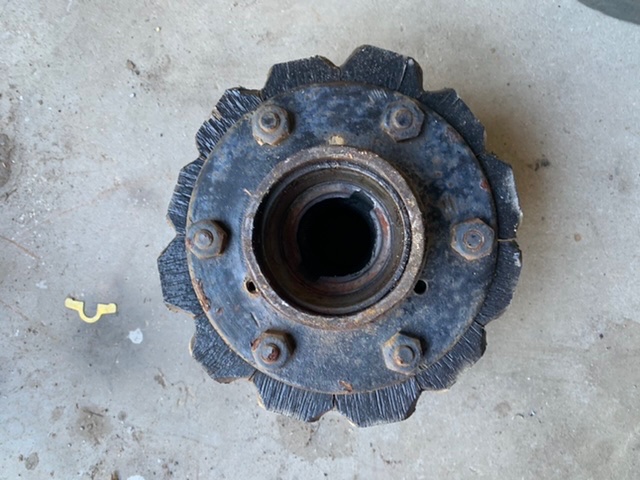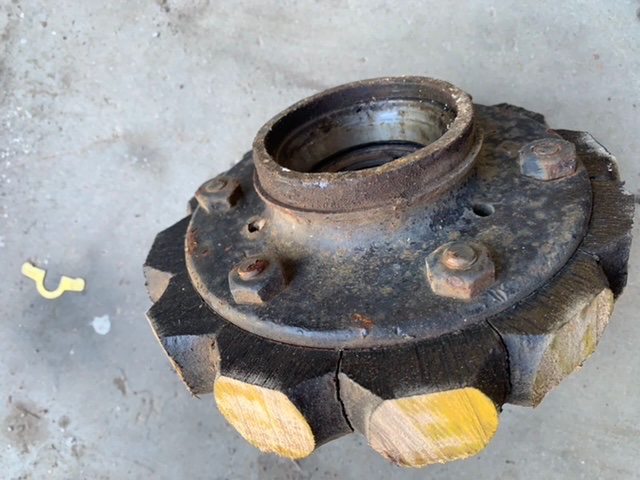 Here is a front wheel hub that is made for a speedometer gear. Used, was on a square fello wheel. Has had roller bearings cups installed. Just cut it out of the wheel. $35.00 + shipping. Email me at address in pictures. Thanks Dan.