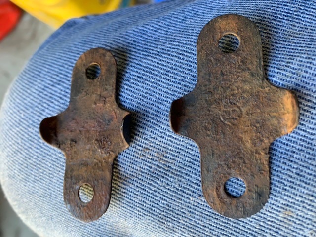 Here is a pair of tie plates for a square fello wheel. Have a H, guess that is for Hayes? $10 + shipping for the pair. Email me at address in pictures. Thanks Dan