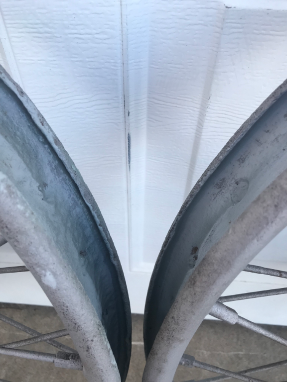 With Tulare and Luray coming up, I thought there might be some pickup options. I have decided to part with this set of four wheels (30x3.5) and four hubs (2R, 2L) with caps in Model T size. Some might run them, but were it me I would re-rim all four. Two rims have pretty deep pits on the inside and marginally sharp spots. One rear hub has a small crack that could be repaired. I'm happy to answer any questions I can and provide additional pictures. These are early House wheels, hubs, and caps but are made by Wire Wheel Corporation and interchangeable with later Buffalos, to include current reproduction parts and services. Pick up in Kansas City metro area. $2500 obo.