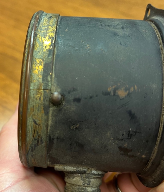 Stewart speedometer. Shaft turns but is stiff. I’m sure it will need to be gone through. The bezel has one small crack.