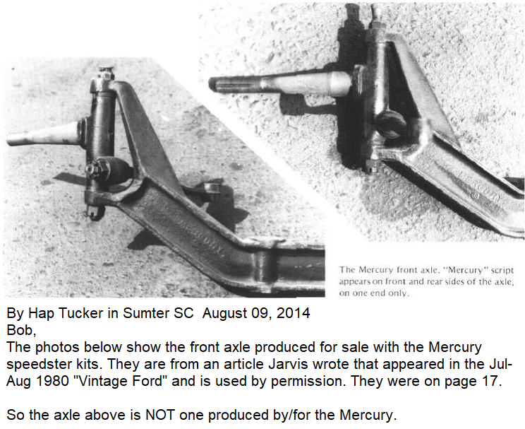 Found the rest of the information for the above picture. In searching I found more recent pictures of Mercury axles that wer dropped on speedsters and only a few not dropped. Couldn't much but perhaps someone has the article Hap mentions