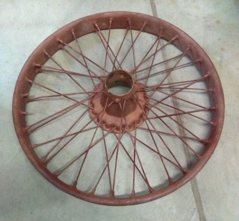 For Sale- 30 x 3½ Budd Wire wheel. Rim edges are sharp but could be used for spare wheel, or I can cut the center out and discard the rim if you prefer. $200.00