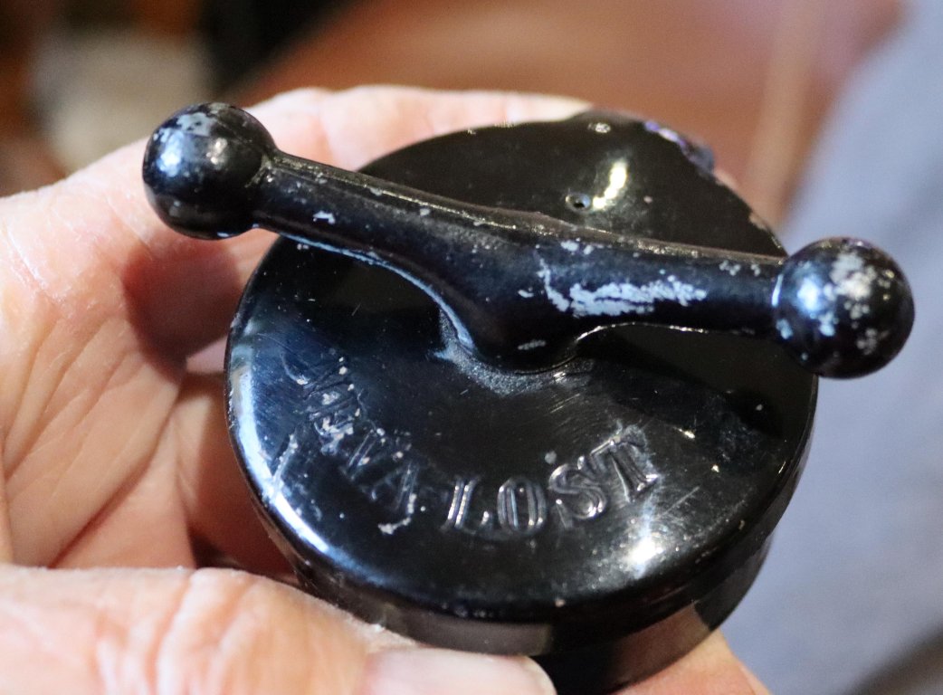 This is a wonderful flip top, quick release gas cap, with two inch diameter female threads. This would be for a Model T Era car with a external gas tank, but could be used on a speedster gas tank. The box has come apart along some of the folds which can be taped together for display attachment=1]Neva-Lost cap 3.jpg[/attachment]