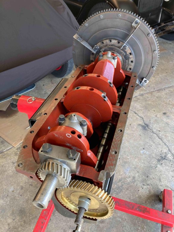 I am selling my T racing engine that I was building for a speedster/hill climber. Unfortunately I will not be able to finish my project. This is a 26/27 block with all the work done. Insert main bearings and rod bearings. Model A counterbalanced crankshaft and Model A camshaft. Bored out with Buick pistons installed. Hard valve seats. 1.7" intakes, 1.6" Exhaust. Adjustable lifters. As you can see, intake ports were divided so that each cylinder has its own intake port. Intake ports have been molded and shaped with a special epoxy (common practice in drag racing engines). I have flanges that bolt to the block for building intake manifold and exhaust header. Rebuilt transmission with kevlar lined bands. Dan McEahern timing gear. Billet main caps. Aluminum head clearanced for the big valves and new solid copper head gasket. Hogs head and four dipper pan with external oiler kit. Pretty cool set up. I know its a lot but do some research and see what it costs to build just a regular T engine. Lots invested in this thing. Asking $5000 OBO. I need to get it out of the shop.