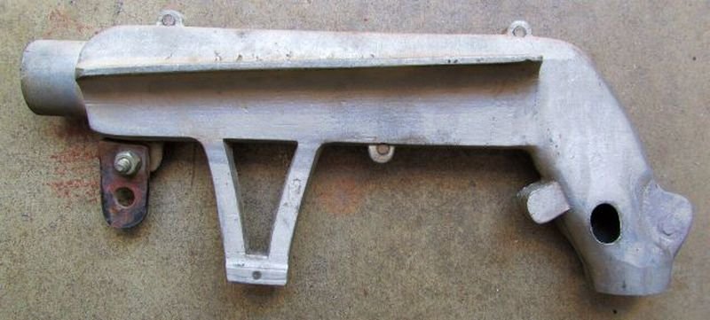 This cast Aluninium accessory bolts up onto your exhaust manifold and passes air coming thru the radiator into contact with the hot exhaust manifold on the way to the carburetor intake. you will need to provide a length of flex-tube between it and the carb intake when installing it. Asking $45 plus postage.