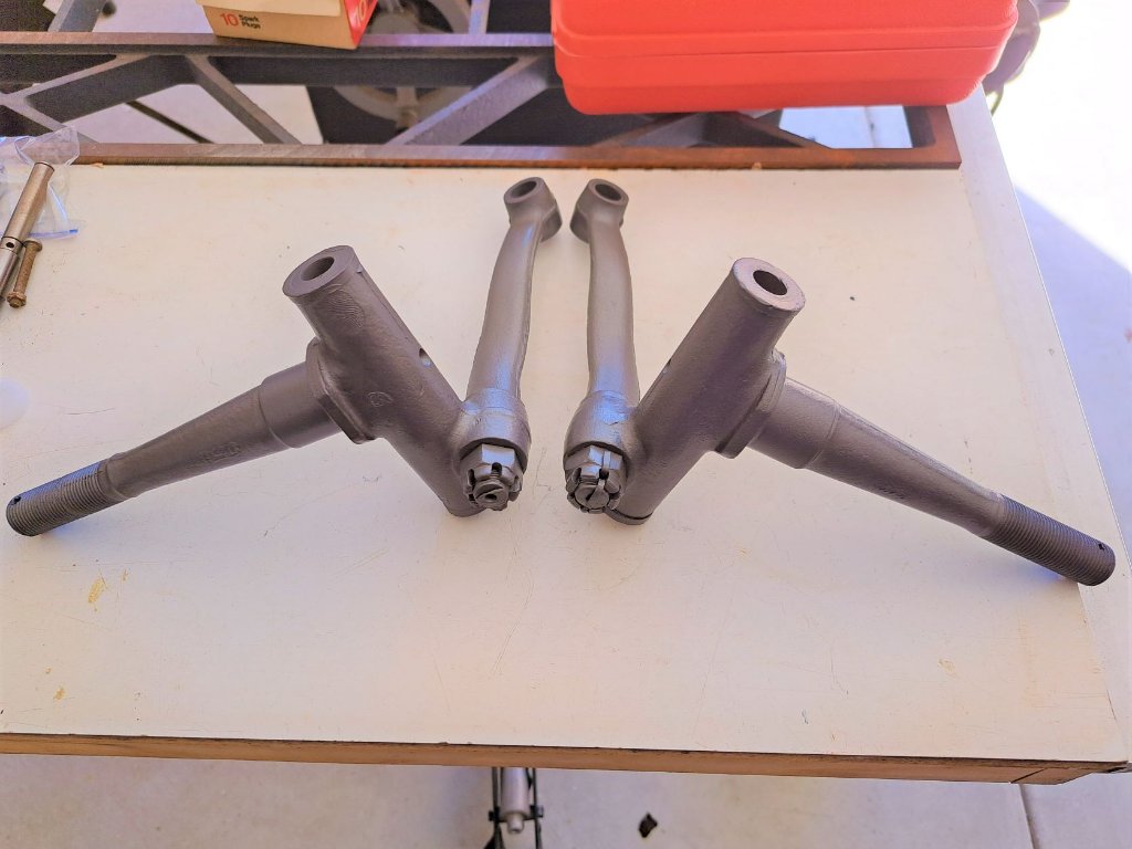 One pair of very nice 26/27 spindles and arms in very good condition. Will require bushings be replaced. Price is $100 for the pair plus $19.10 domestic usps priority shipping. Mark Chaffin (951) 805-0928