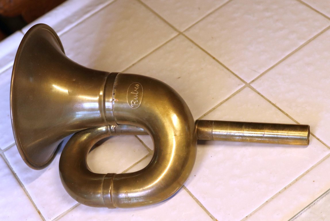 the horn is in nice used condition and measures 9 inches long and the bell is 5 inches in diameter. Works when blown into by mouth. A horn bulb to fit can be purchased from a number of the Model T parts dealers along with a mounting bracket. Asking $45 plus postage. FOUND A NEW HOME!