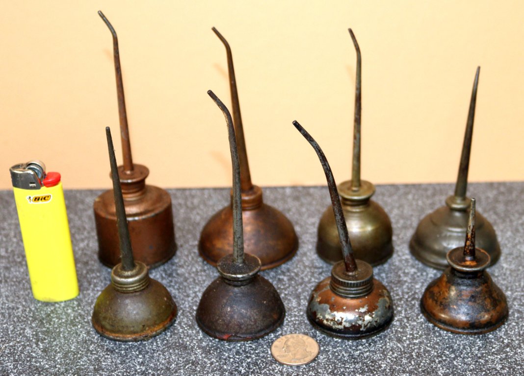 Here's a set of barn fresh small oil cans from my display shelf. Asking $39 plus postage.
