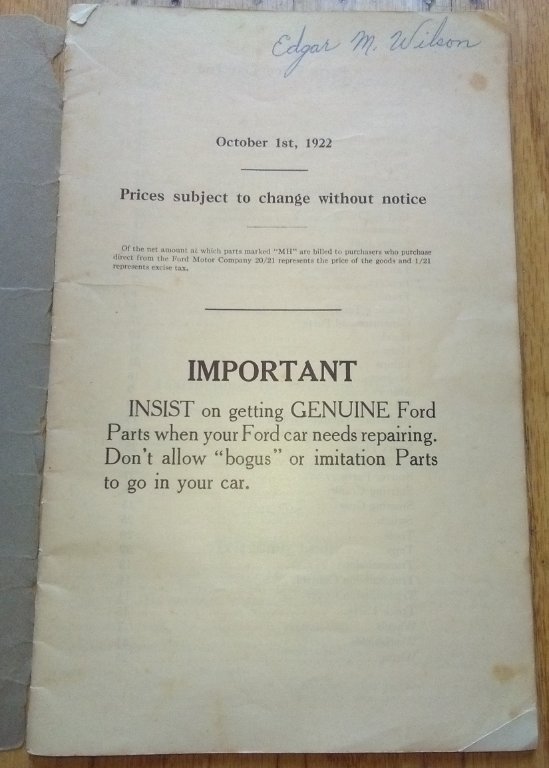 Model T In Speed and Sport- shop worn reprint. $10.00 Original Ford 1923 Price List of Parts Pictures show condition. $20.00