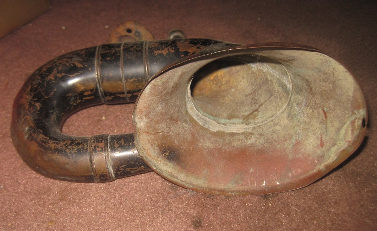 FS one rough unrestored "Nonpareil" brass horn, correct for 1914 (and possibly late 1913.) Missing grille and screen, and there really are some serious dents and dings. If you like a challenging restoration this horn is for you. Asking $60 + shipping. Thanks for looking.