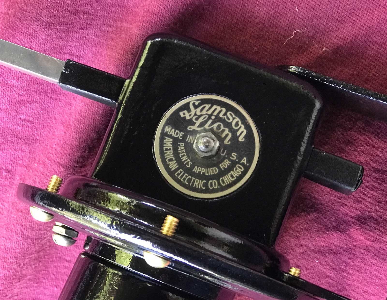 Nice Original Samson Lion ahooga horn. Polished brass 5 inch diameter bell. 9.5 length. Black paint on steel body. No dents or damage. Very loud “AHOOGA!” when plunger is pressed. Ready to mount and use. Tone is adjusted by tension screw on bell. Very clean. 325 includes shipping.