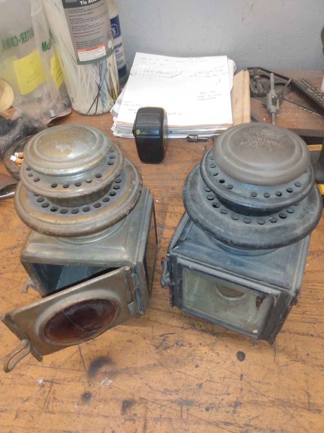 One is a brass top with small dent. One has big hole in back. Glass is good except for red lense. 30.00 for both plus shipping. ctleonard64@gmail.com