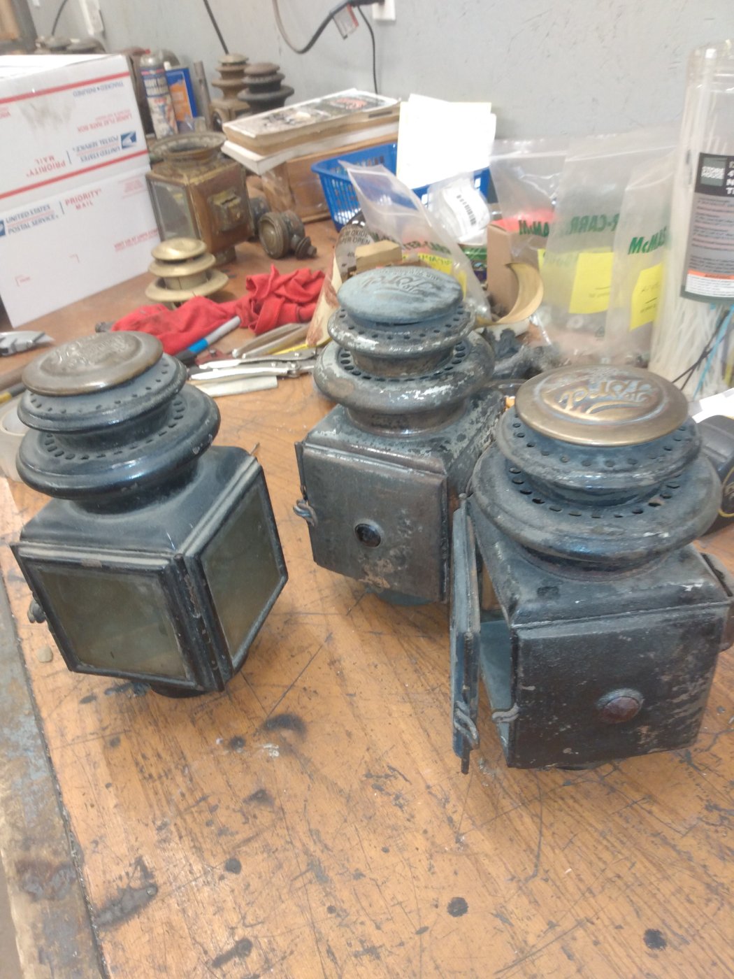 Have three jno brown 110 sidelamps fs. One has a dent free brass top. The other two ,no. Two have jewels in them. All glass is good. 80.00 plus shipping for all. ctleonard64@gmail.com