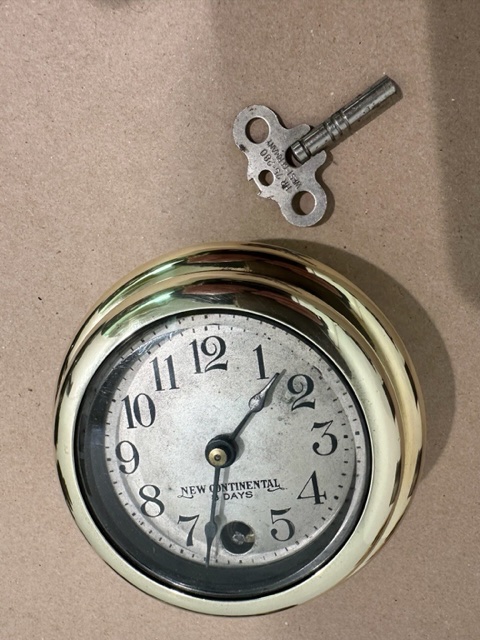 F.S.Brass Era New Continental 8 Day Dash Clock with Key.