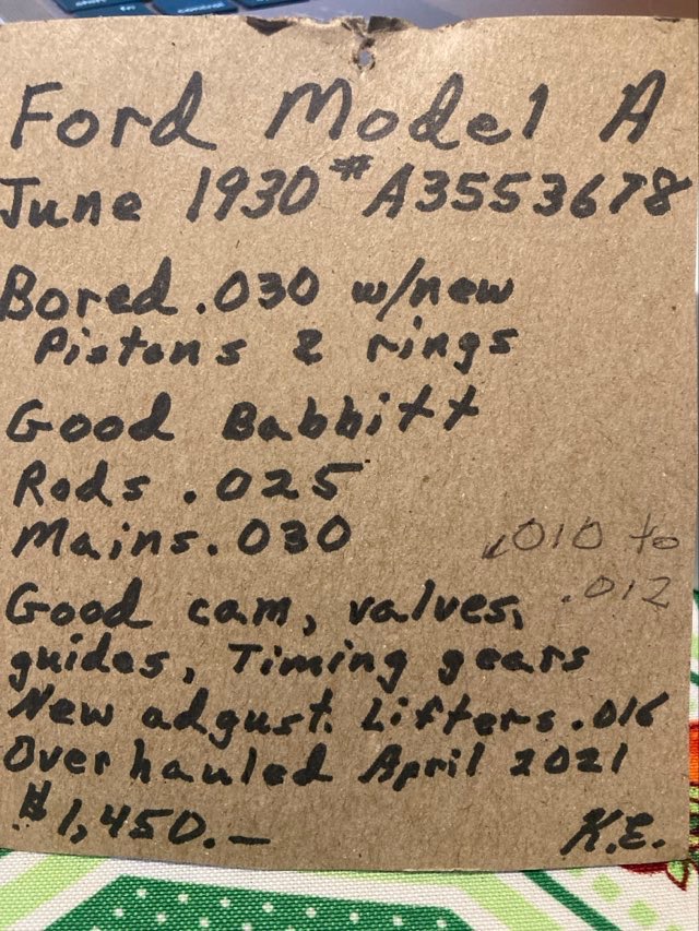 For SALE an ENGINE for Model A Ford. Year 1930, overhauled and ready to use. $1,295.00. Call Ken (253)548-3088 Tacoma, WA