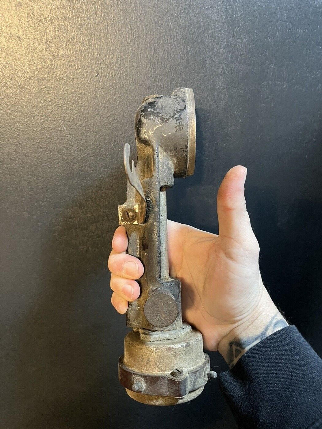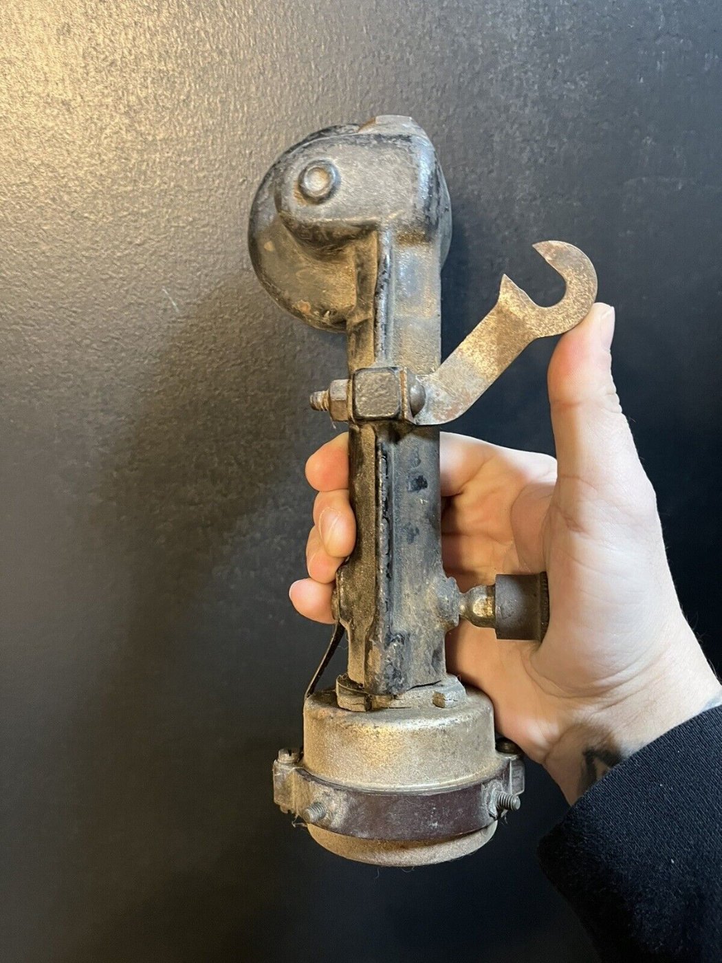 Very interesting setup. Has points running on a cam, the distributor cap is more like a timer, the rotor is missing. The gear looks similar to others