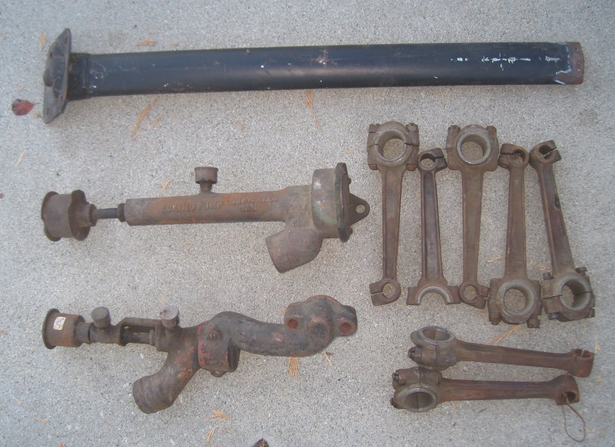 1926-27 Steering Column Tube, has cracks where the gear case mounts, asking $5; Two (2) accessory water pumps, asking $20 Each; a collection of early heavy connecting rods, I'm pretty sure there's at least one Dodge Brothers one in there, asking $10 for the pile.