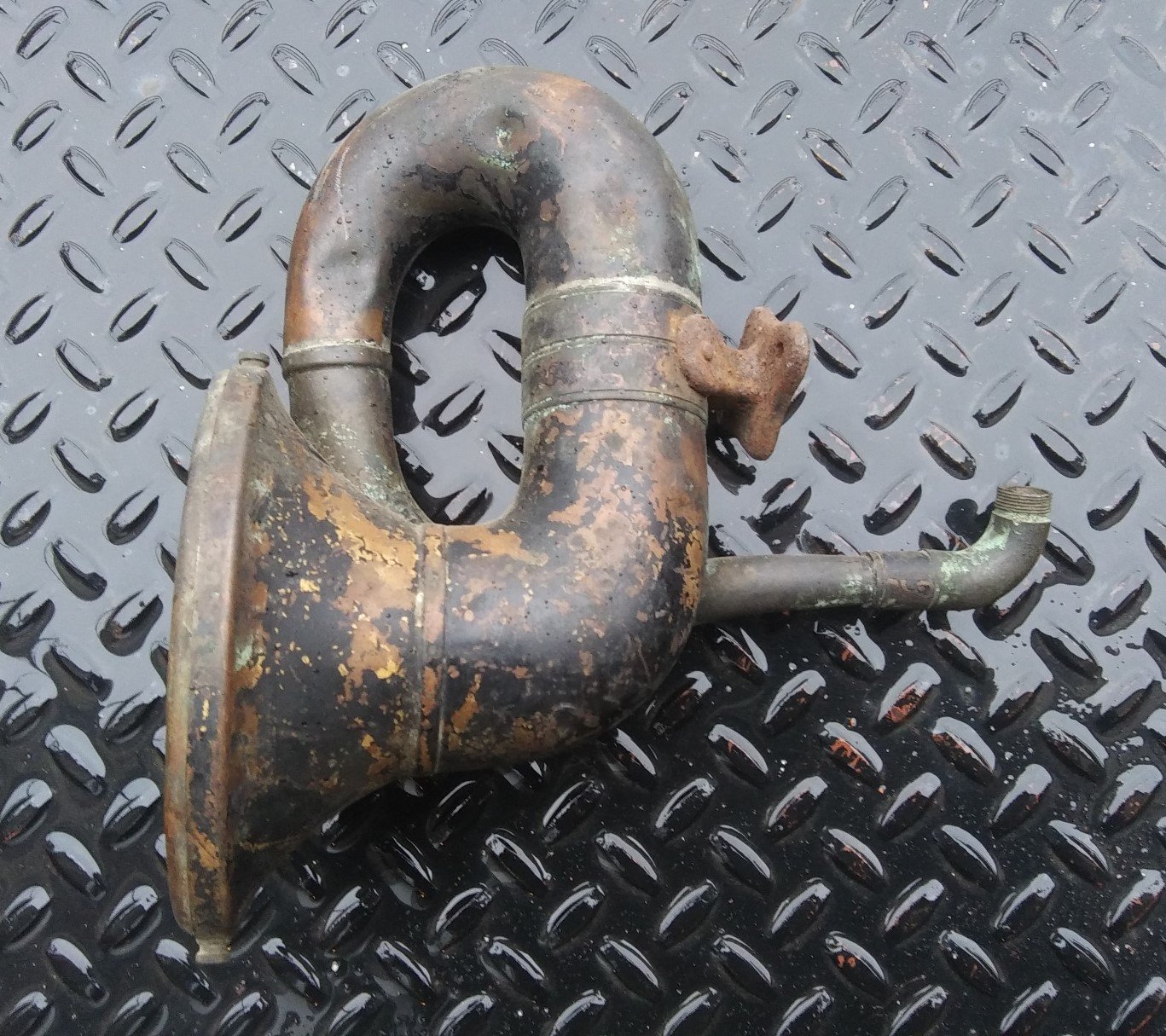SOLD: Early 1915 Brass Bulb Horn with Rare Elbow Connection