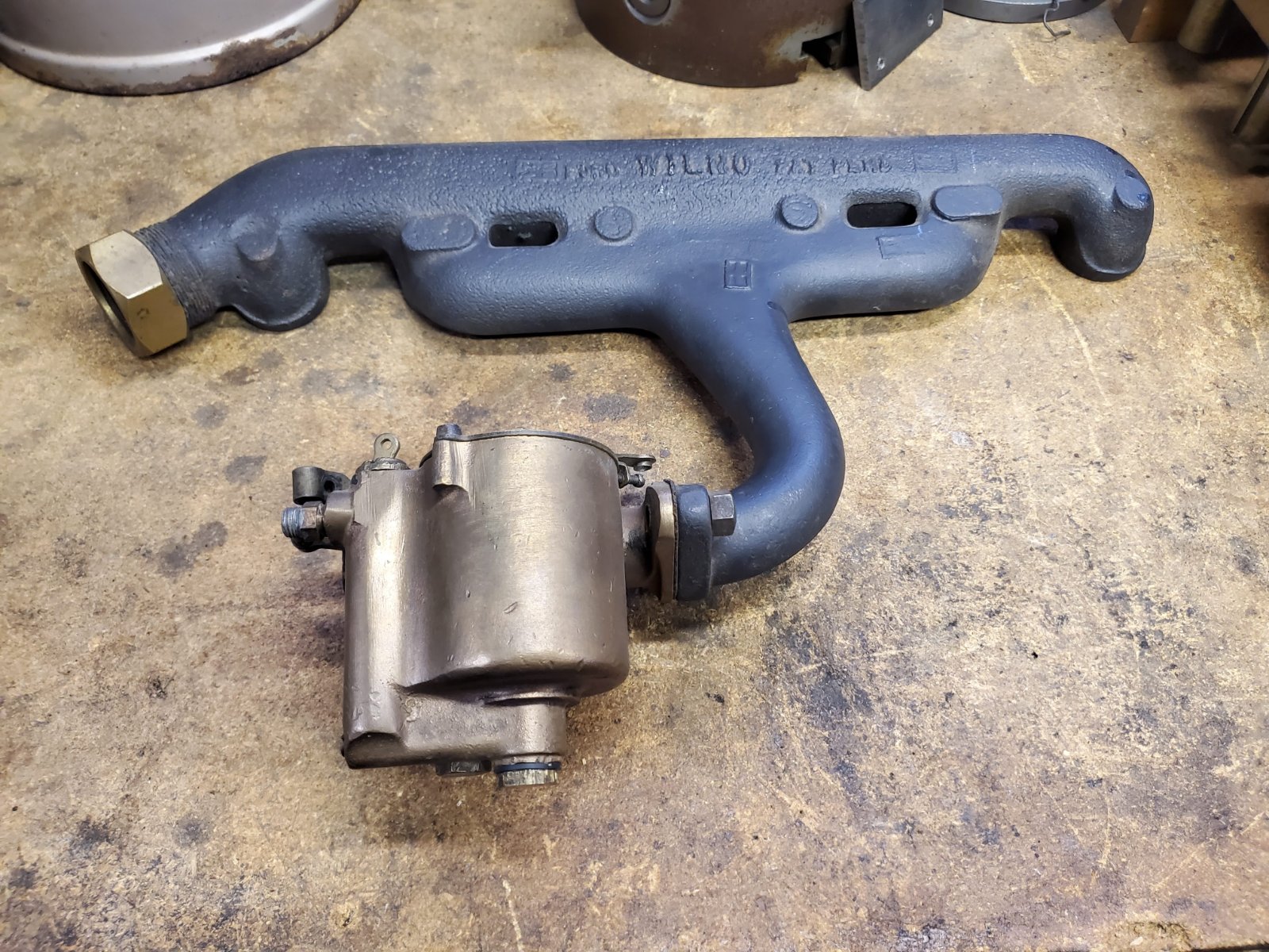 This Stromberg OF came on my 20 runabout 15 years ago but when I rebuilt it I decided to go with a HN Straight through, the manifold has just been hanging on the wall. The threads are in great shape and the pipe nut screws all the way on easily.