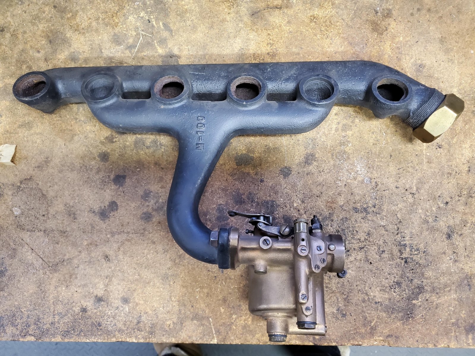 This Stromberg OF came on my 20 runabout 15 years ago but when I rebuilt it I decided to go with a HN Straight through, the manifold has just been hanging on the wall. The threads are in great shape and the pipe nut screws all the way on easily.