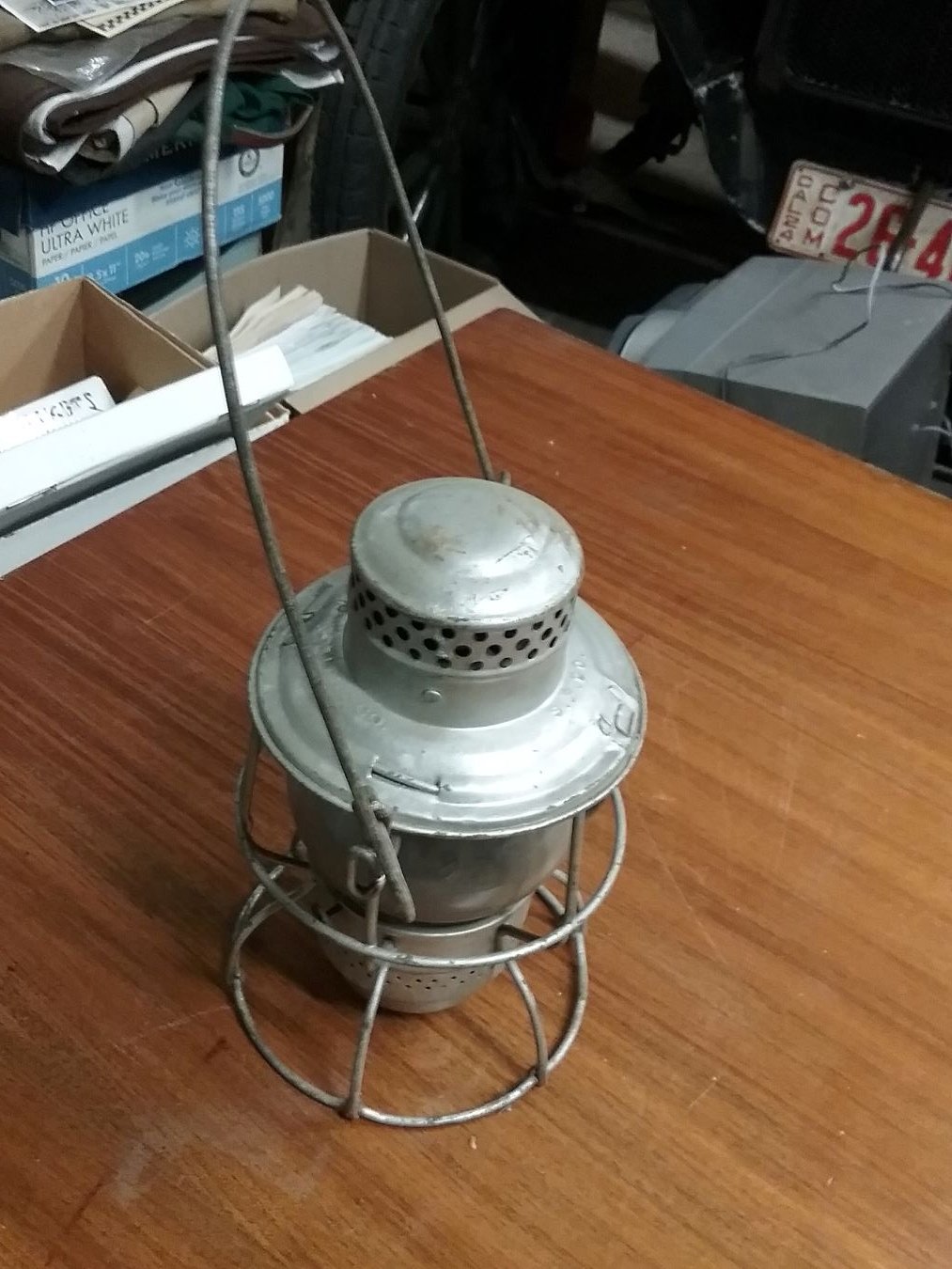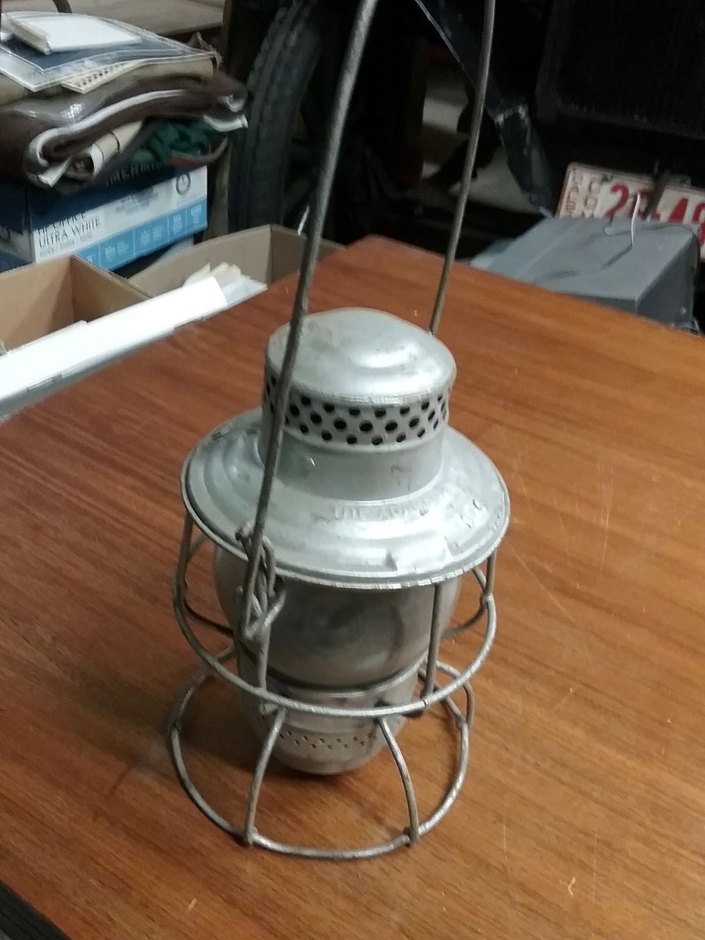 Okay let's try again. Adams Westlake Kerosene Railroad lantern from the Pacific Electric Railroad. Has P E stenciled on the clear globe. good condition. 10 1/2 inches tall. $35.00 plus shipping. Can't get the pictures to download????