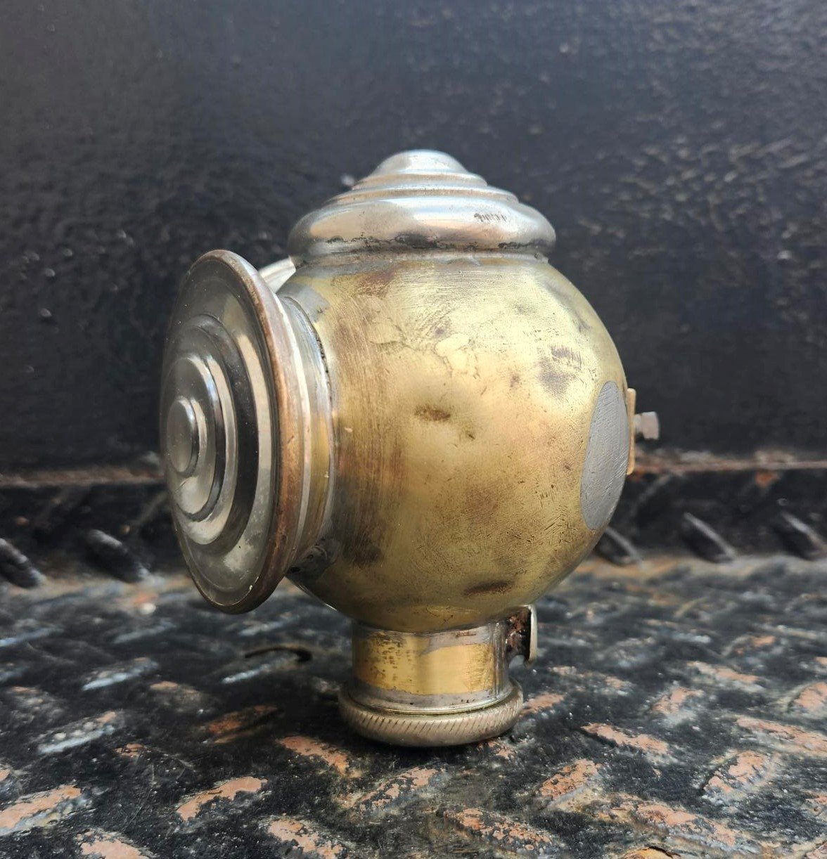 SOLD: Rare Brass Helmet Tail Light for Early Quality European or American Automobiles