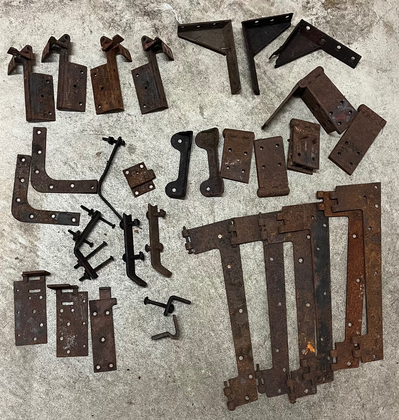 This is a box lot of brackets, hinges and other miscellaneous pieces for Model T bodies. Came from an estate clean out. What’s left of a bucket of random T parts. What you see is what you get. Everything is rusty, seized, and pitted.