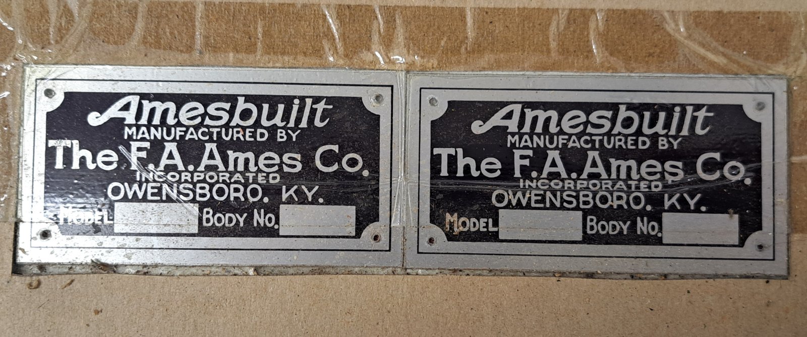 One pair of AMES BUILT data plates. Price is $20 for the pair with free domestic shipping. Mark Chaffin (951) 805-0928