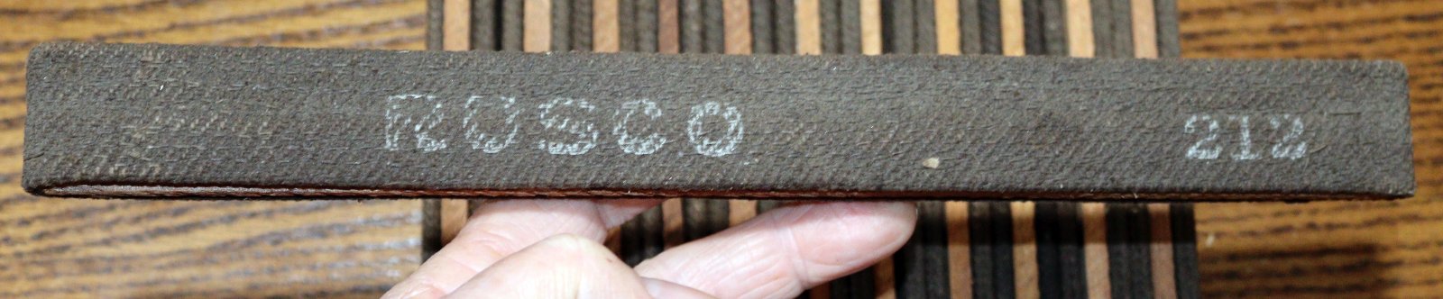 These dozen belts packed with wooden stretchers are new old stock with remains of the original box. Asking $35 plus postage.