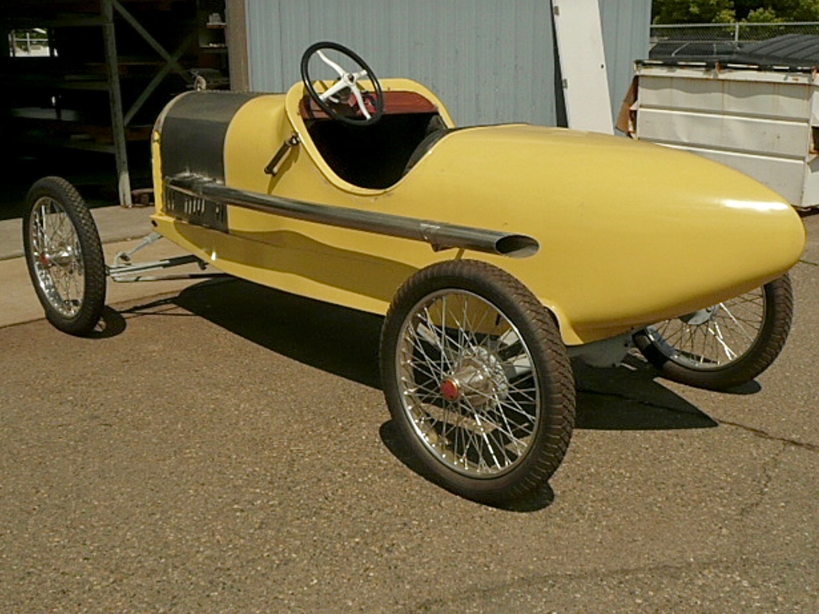 That is neat. It is a Poliform fiberglass Speedster body. Modeled after the Morton and Brett bodies. Very rare, the molds were destroyed I believe. Easy way to make a nice speedster.