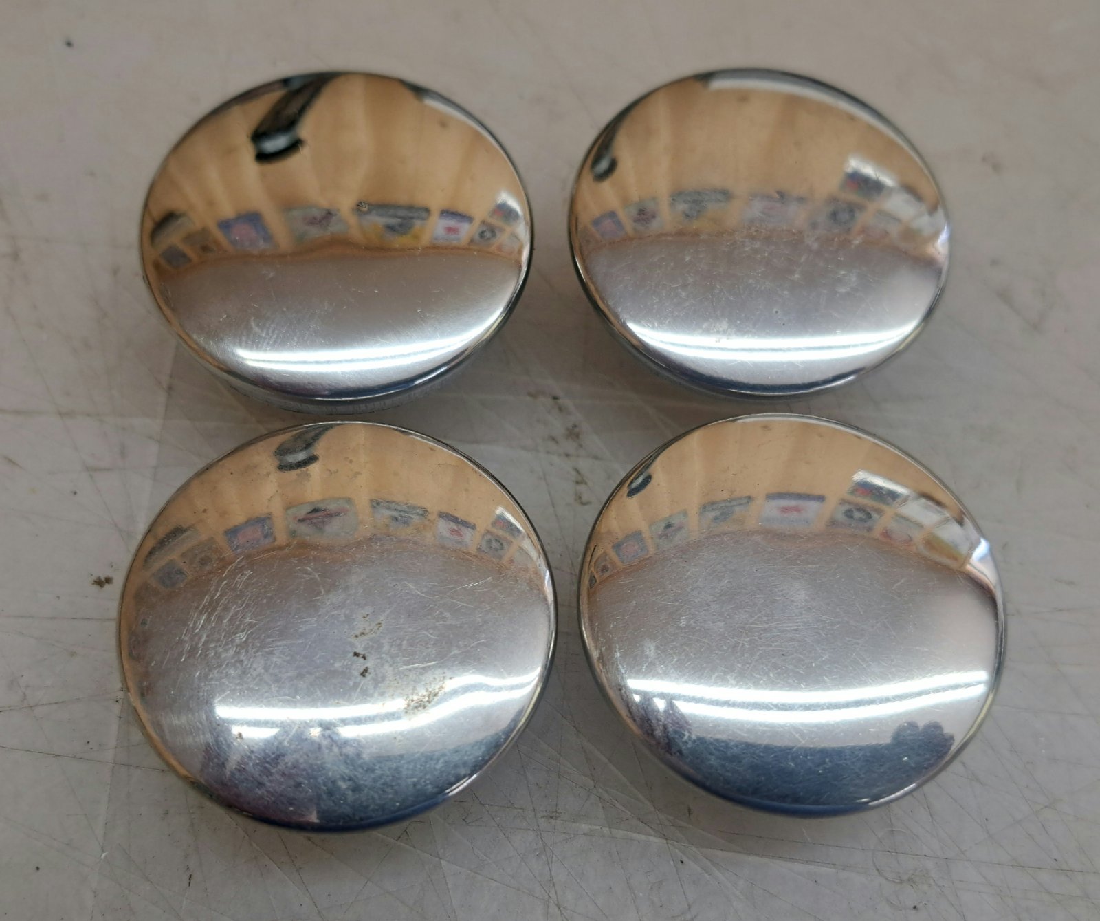 Wire Wheel Hubcaps used. Set of four. $10.00 plus $8.50 domestic shipping. SOLD