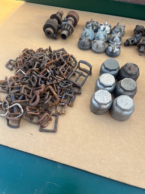 Misc radiator mounting parts$10.00. Pile of buckles $15.00. Magneto plugs all for $40.00. Rear axle bearings $40.00 for all. Hubcaps all for $10.00. Radiator caps all for $10.00. 2 bendix , $40.00. All plus shipping. Kdmks@att.net.
