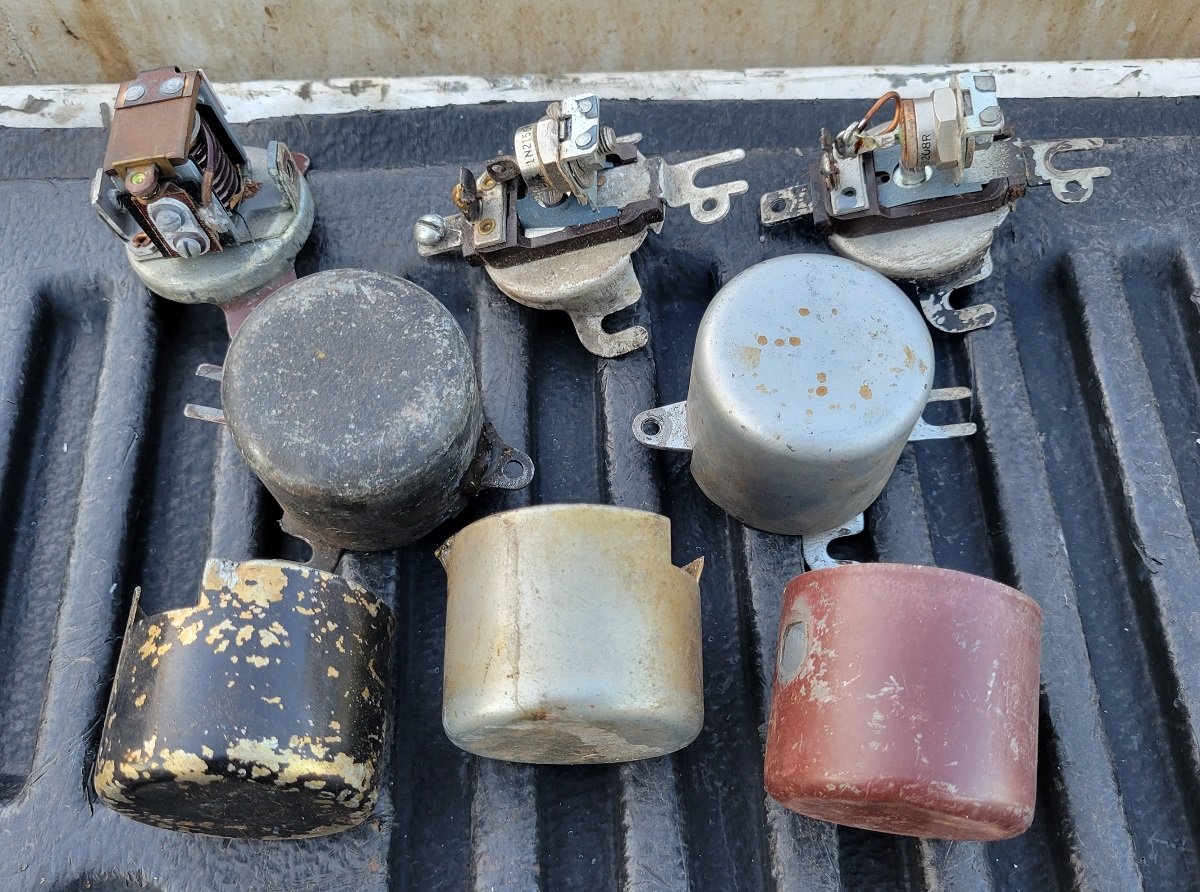 FS: 3 mechanical and 2 diode cutouts for parts or restore. The diode cutouts have cracked insulators; maybe good for donor units? I took the cans off of 3 of them to show what's inside. $5 for everything here, not including shipping.