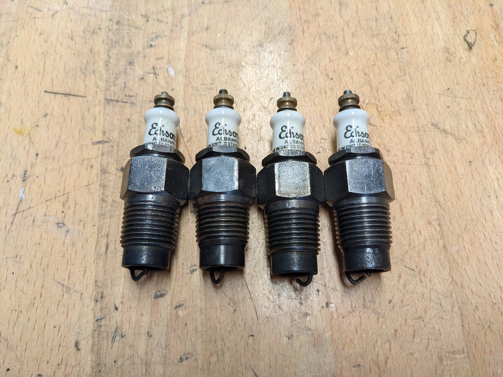 Since I'm in the process of selling our Model T that is equipped with Edison 14 spark plugs, I'm selling these spare Edison 14 plugs for $100, which includes tracked shipping. The plugs are used, but appear to be in good shape.